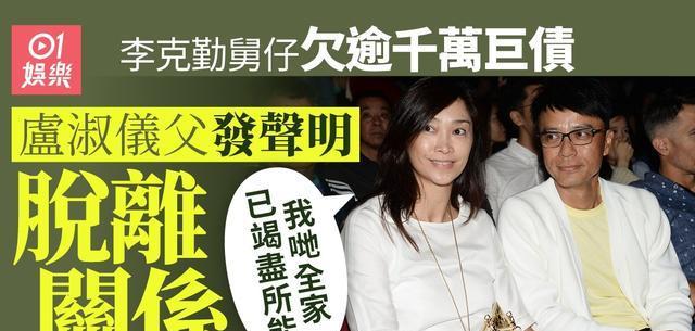 11月12日,李克勤的岳父卢国辉突然发声明宣布,从2025年11月12日起,与儿子卢煜培正式断绝父子关系,此后与卢煜培之一切行为及金钱纠纷,均与本人及家人无关。 李克勤的妻子卢淑仪发声回应,称因为弟弟的债务问题