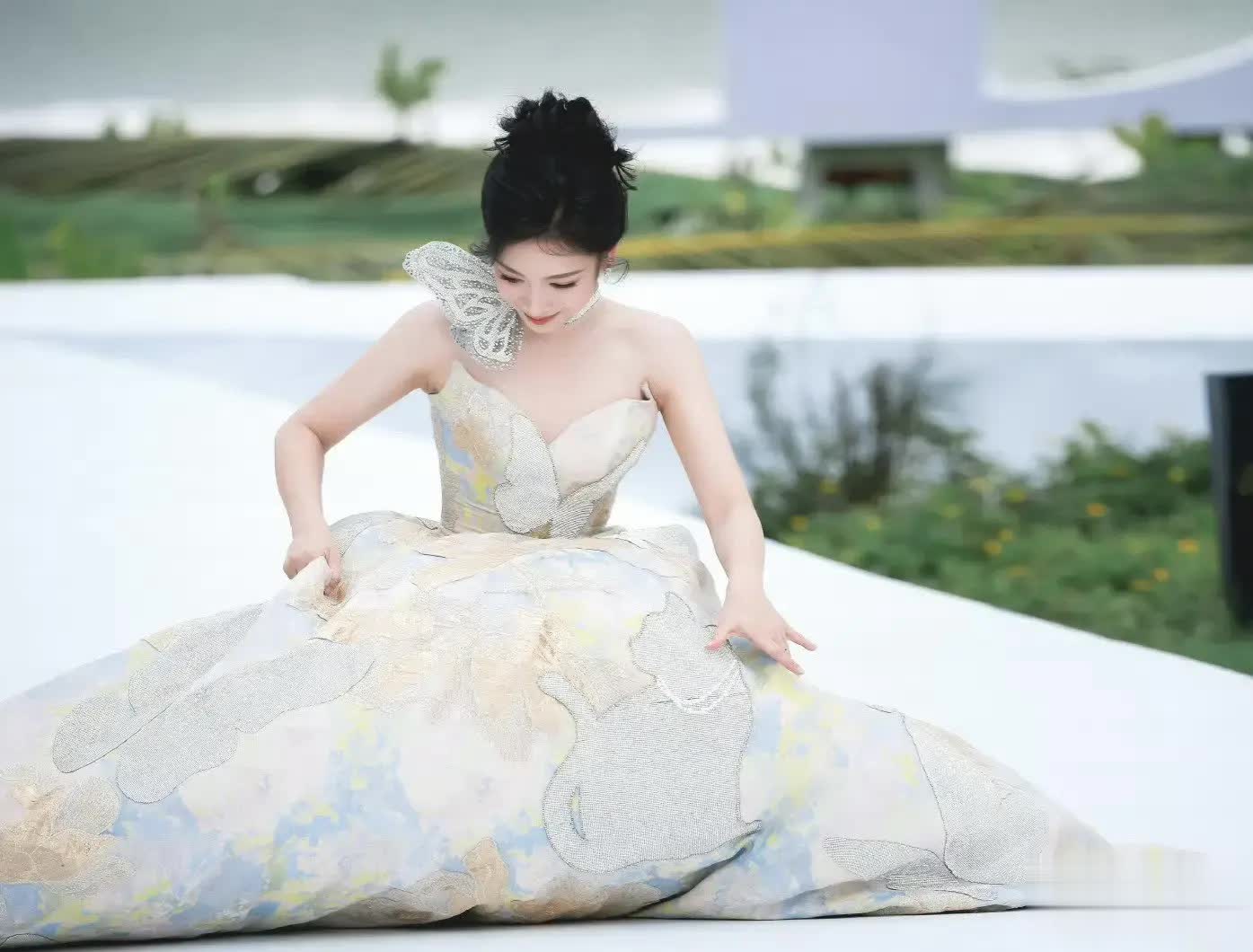 三亚当天海风强劲,阵风频发,加之礼服裙摆长达数米且材质轻盈,行走本就极为艰难。代露娃需双手提裙才能稳步前行,但在一次强风突袭中,裙摆被高高掀起,她不慎踩住纱料,身体瞬间失衡向前摔倒。但令人动容的是,她在跌倒瞬间仍本能地护住颈部的蝴蝶结装饰,避免造型受损,随后迅速单手撑地,轻盈起身,微笑着整理裙摆,继续完成红毯流程,全程未显慌乱,被赞为“教科书级的优雅应变”。