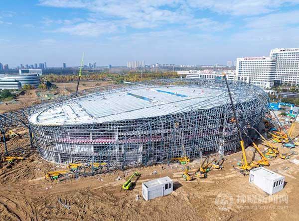 11月13日,记者航拍正在施工中的宿州奥体中心游泳馆。目前,该馆主体工程已全部完成,与奥体中心主体建筑连为一体。作为承担省十六运相关大型赛事的主场馆,该项目建成后,将全面提升我市体育赛事承办能力,完