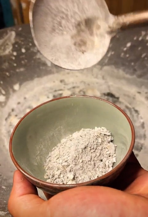 3、用容器装灰,倒入少量清水(比例约灰:水 = 1:2),搅拌后静置10~20分钟。