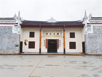 它隐匿在一片寻常民居之间,前身是捷三公祠,门额上“捷三公祠”的匾额历经岁月洗礼,作为原物遗存至今。这座有200多年历史的清代建筑,白墙青瓦,翘角飞檐,显得宁静而肃穆。
