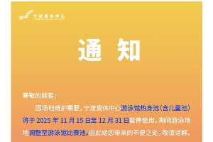 另据宁波奥体中心官方公众号发布的消息:“因场地维护需要,宁波奥体中心游泳馆热身池(含儿童池)将于2025年11月15日至12月31日暂停使用,其间游泳场地调整至游泳馆比赛池。由此给您带来的不便,敬请谅解。”