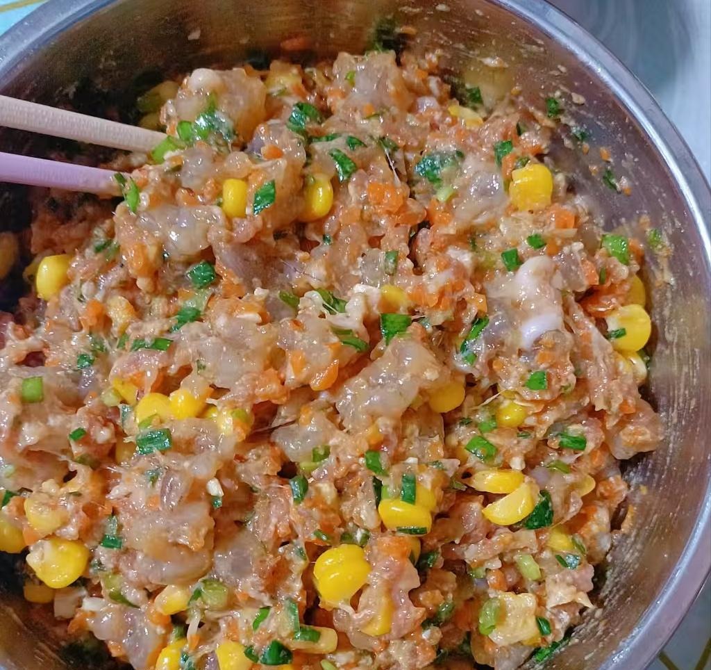 四、 虾仁玉米馅。