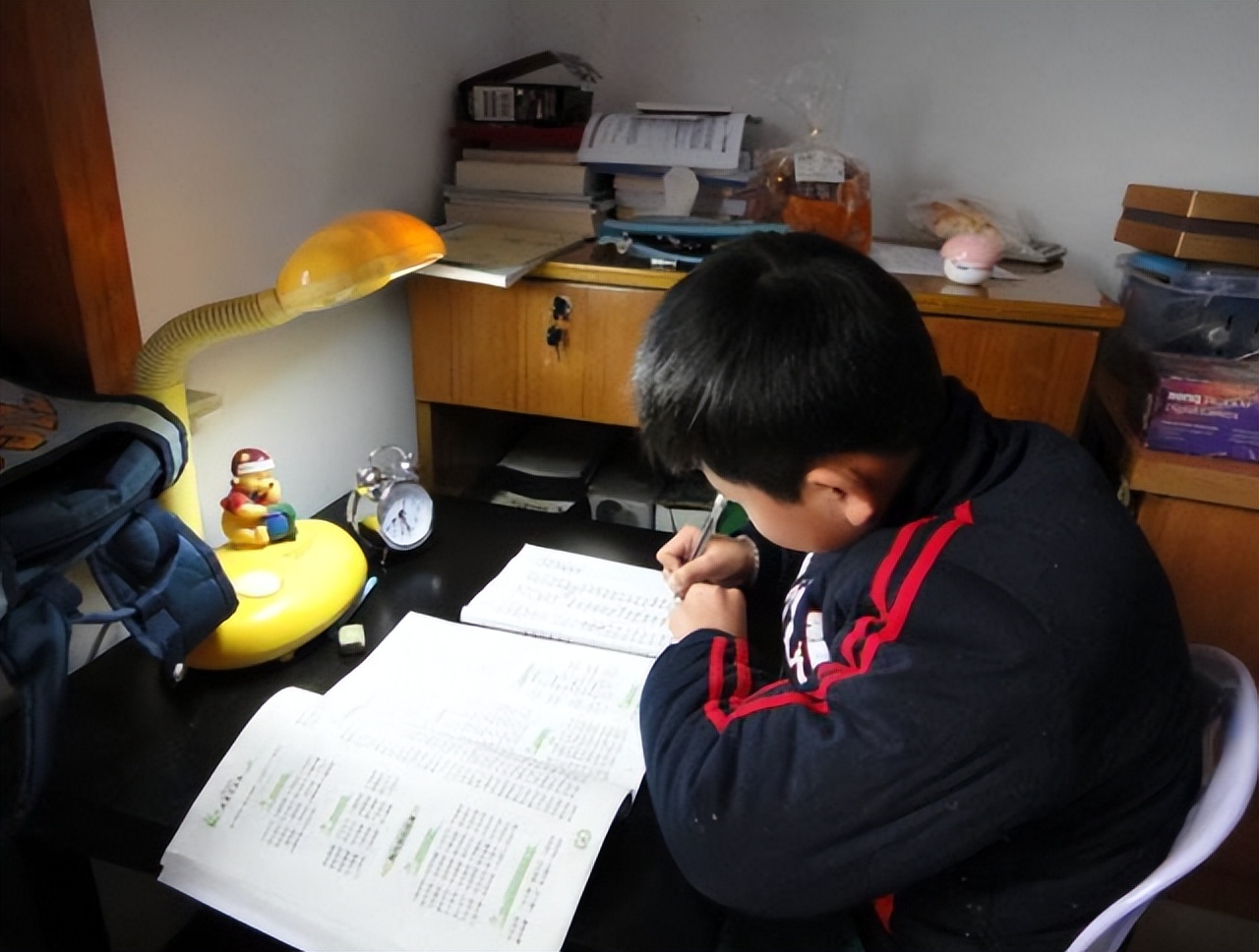 为了提高学习成绩,孩子在学校一坐就是十几个小时,早晨太阳还没有起来,孩子已经开始晨读了,晚上狗都已经睡觉了,孩子还在写作业。