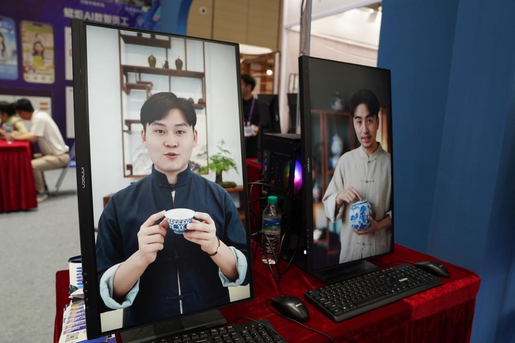 2025年10月18日在2025中国景德镇国际陶瓷博览会展区拍摄的AI陶瓷销售系统展示。新华社记者 周密 摄
