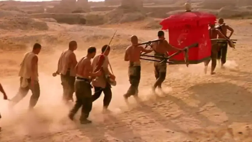 最后是电影的插曲,一首是《妹妹你大胆地向前走》,一首是《酒神曲》,这两首歌都带着浓郁的地域风情,由这两首歌所感知的是当地人的性格。张艺谋将其选在此地,放在特定的时间有画龙点睛的作用,其构思巧妙,令人赞叹。