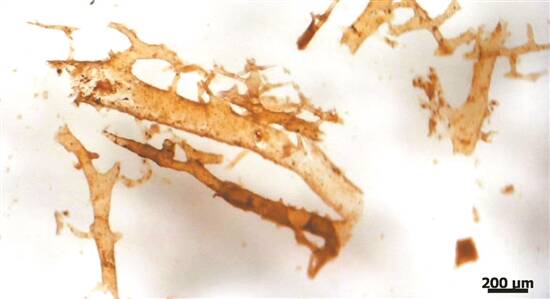 化石中提取到的血管组织北卡罗来纳州立大学供图英国学术期刊《皇家学会会报A辑》最近发表了一项研究,宣布在霸王龙与加拿大短冠龙的化石中发现了血液蛋白质的分子痕迹。