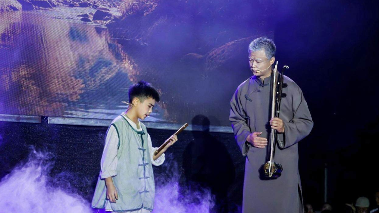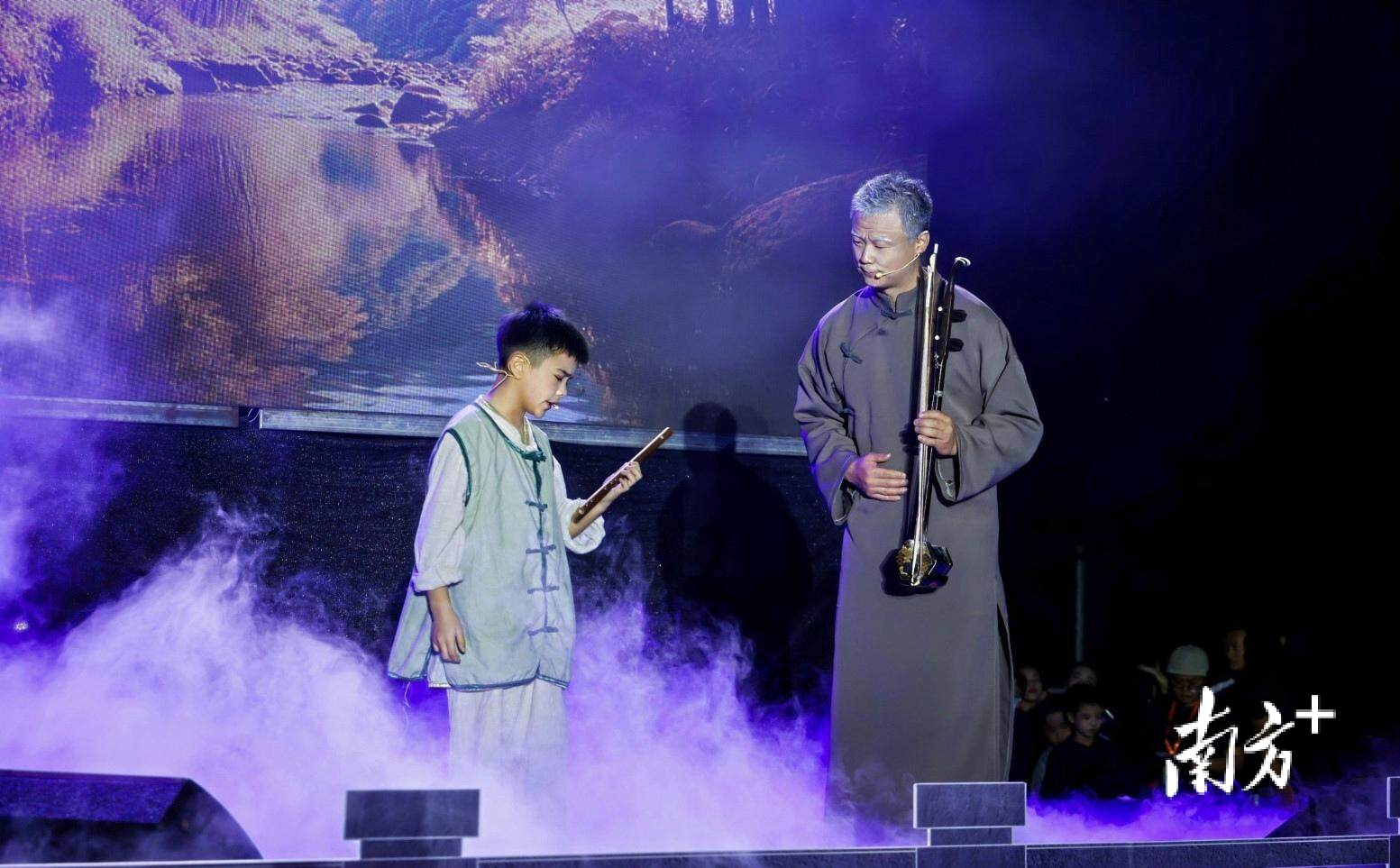 大环村是吕文成的故乡,第一篇章则以中山自然风光为背景,通过东乡民歌《花开要有春风吹》、童声合唱《落雨大》等曲目,展现吕文成童年时期的音乐启蒙与文化滋养;第二篇章则聚焦吕文成在上海时期的艺术融合,通过双高胡重奏《青梅竹马》、粤曲《粤韵谱华章》及融合重奏《早茶轻喧》,展现中西文化碰撞的激荡岁月;第三篇章以抗战救亡为背景,通过打击乐表演《战鼓燎原》、融合表演《醒狮》,彰显坚韧的民族精神与家国情怀;第四篇章大胆探索传统的现代化表达,全新演绎了吕文成经典曲目,其中《步步高畅想曲》融合了说唱、民乐、粤曲、街舞、打击乐等多元艺术,展现了大湾区的文化创新力。