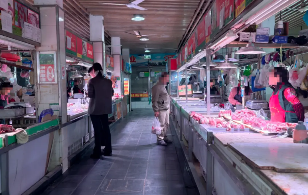 三角地东安菜市场的烟火气更盛,几乎每个肉类摊位前都有市民询价挑选。