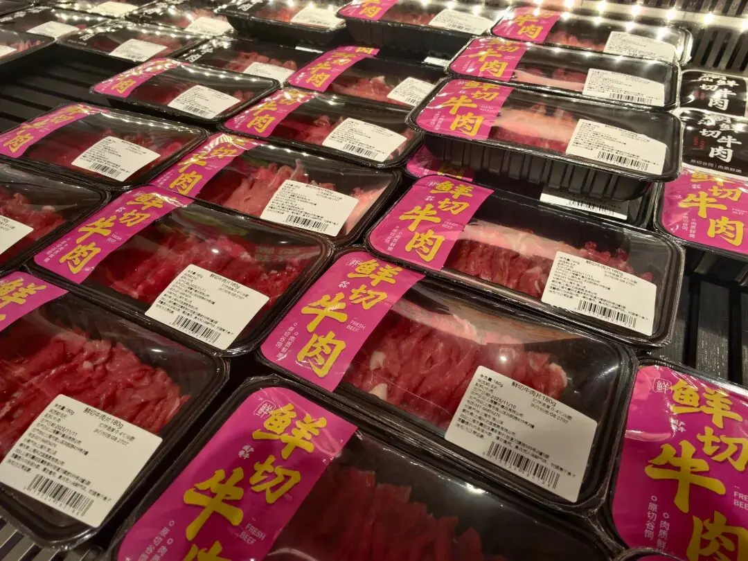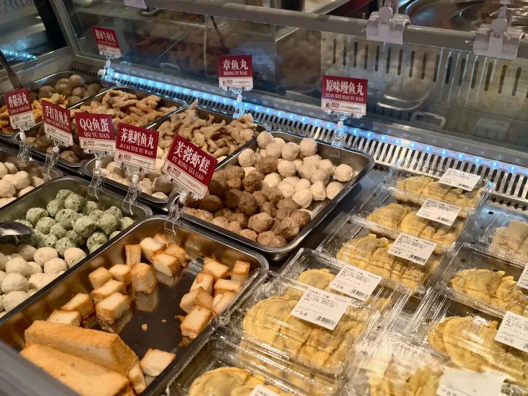 走进太阳宫七鲜超市,红彤彤的“七鲜火锅江湖、涮烫人间百味”的标语格外吸睛,超市专门开辟的火锅食材专区不时迎来市民驻足挑选。鲜切肉类柜台前,潮汕鲜切肥胼、五花趾、匙柄、吊龙、牛腱等牛肉系列整齐码放,价格从16.8元40.9元不等,旁边的现做柜台里,蛋饺、百叶包金黄诱人,手打丸子弹性十足,称重售卖的价格在26元至46元左右每斤,实惠又新鲜。