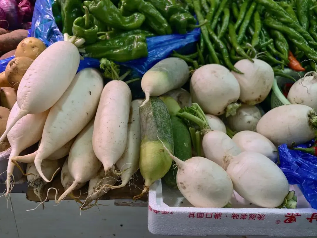 与此同时,“冬吃萝卜夏吃姜”的习俗也带动了萝卜销售。市场内蔬菜摊的时令白萝卜堆成小山,标价2元/斤。摊主介绍:“最近每天能卖几十斤,比平时销量高不少。”正在买菜的陈阿姨拿起一根白萝卜告诉记者:“白萝卜清热润肺,和排骨、牛肉一起炖,汤鲜味儿足,冬天喝再合适不过。”