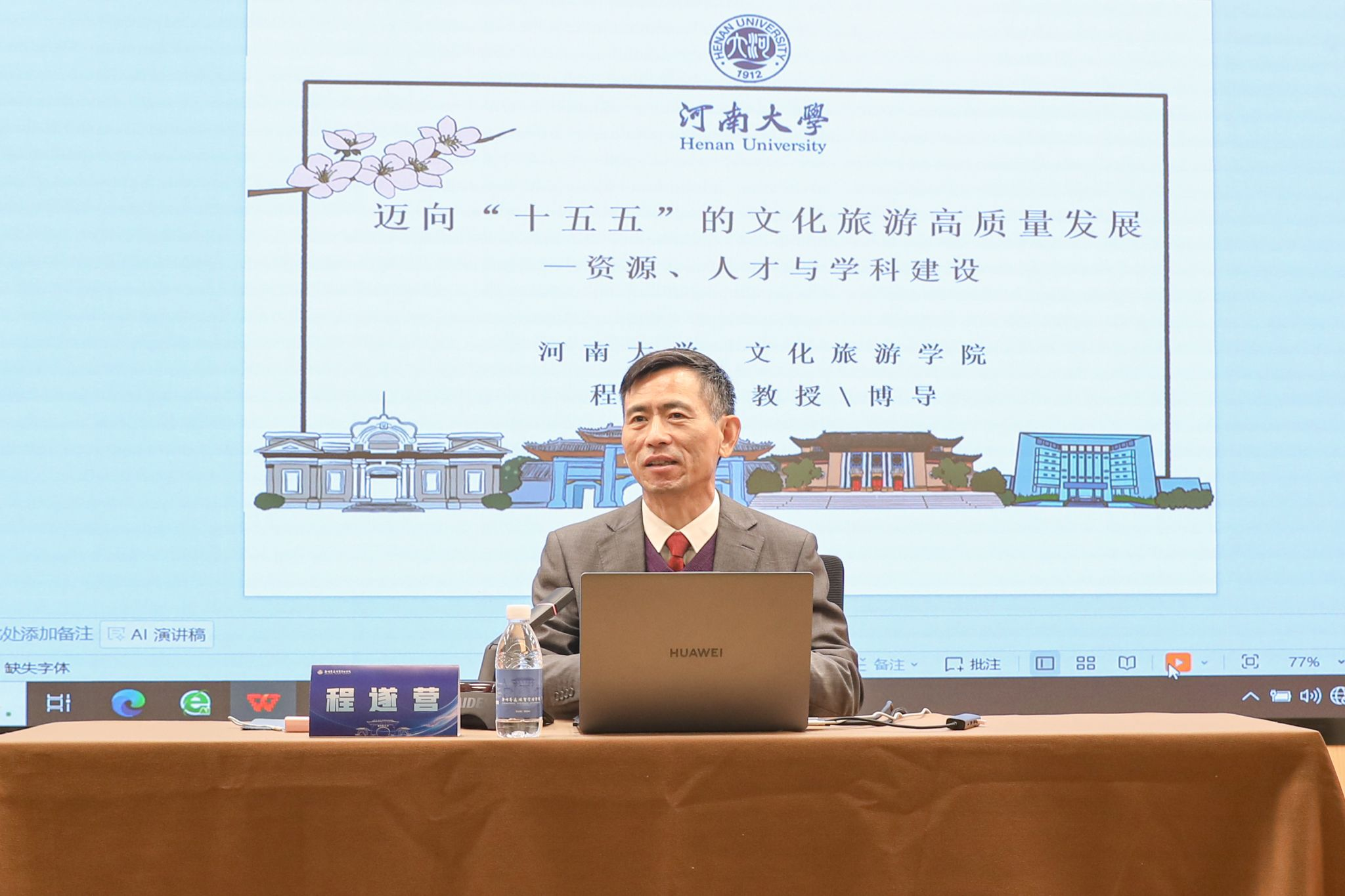 在主题报告会场,程遂营重磅开讲,以《迈向“十五五”的文化旅游高质量发展:资源、人才与学科建设》为题展开报告。他立足我国文旅发展新阶段背景,系统梳理了我国及河南丰富的文化旅游资源禀赋的核心优势,深入解读了文旅发展从入境旅游到文旅融合的演进历程、当前研学旅行等新业态发展现状,以及“十五五”时期文旅人才培养与学科建设的核心路径,全方位呈现了文化旅游高质量发展的前沿动态与实践方向。报告既有数据支撑的资源梳理,又有贴合河南实际的落地指引,引发了全场师生的强烈共鸣。