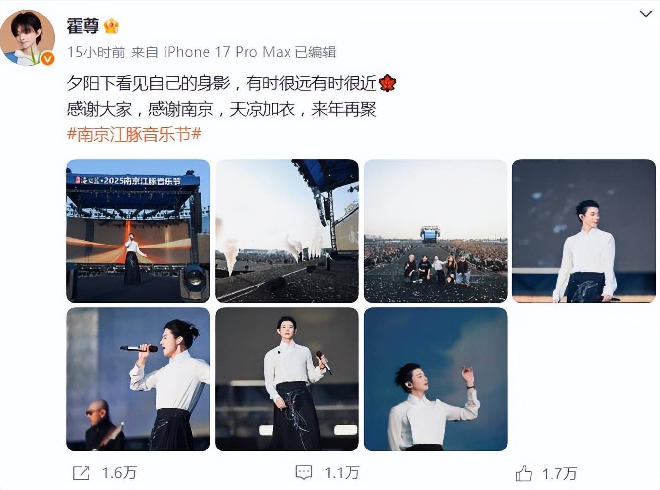 面对台下安静聆听的观众,霍尊难得流露出松弛一面:“我很少下午唱歌,此刻你们都好安静。”他透露特意提前两天抵达南京,享受当地美食与街景,这番家常对话与三年前那个被推至舆论风口浪尖的形象已判若两人。演出落幕时,他在社交平台感性发文:“夕阳下看见自己的身影,有时很远有时很近。感谢大家,感谢南京,天凉加衣,来年再聚。”字里行间透露出对舞台的珍惜与人生起伏的感悟。