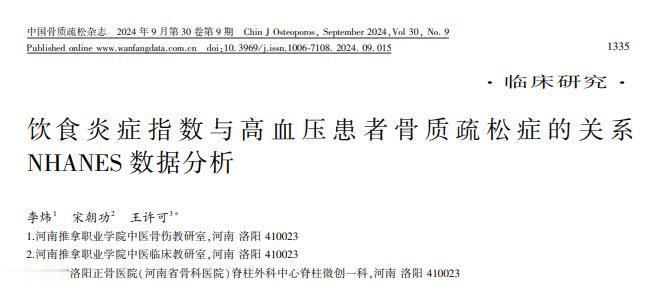 [1] 李炜,饮食 炎 症 指 数 与 高 血 压 患 者 骨 质 疏 松 症 的 关 系 NHANES 数据分析,中国骨质疏松杂志,2024-09-09