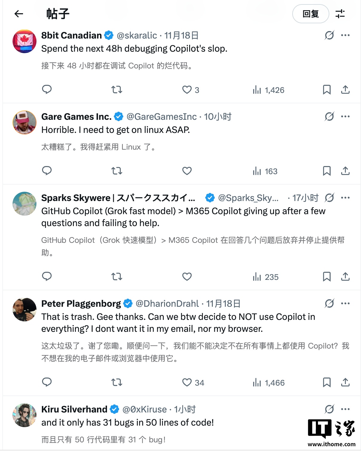 据IT之家了解,这条推文收到的大部分评论是负面内容。网友要么调侃微软完全看不懂社区情绪,要么强调 Copilot 的能力根本不足以让开发者放心,否则依旧得花大量时间逐行检查。