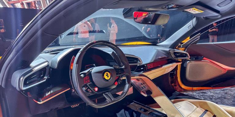 空气动力学来自1970年代原型赛车的灵感,车身线条锐利、几何感强,整体下压力在250km/h时达到415kg,比SF90多25kg,冷却效率提升15%。