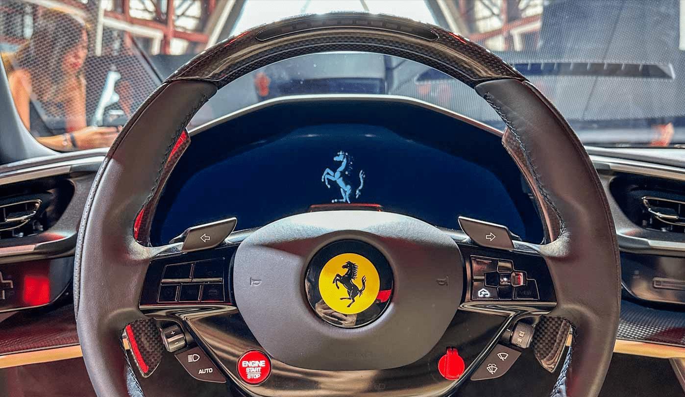 ADAS也全面配置,包括AEB、ACC、车道维持与交通标志识别。车载系统提供Apple CarPlay、Android Auto、无线充电与MyFerrari Connect。