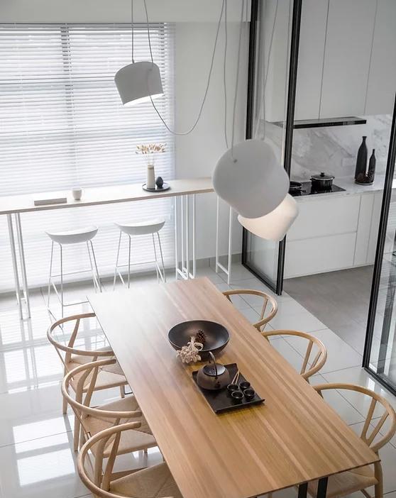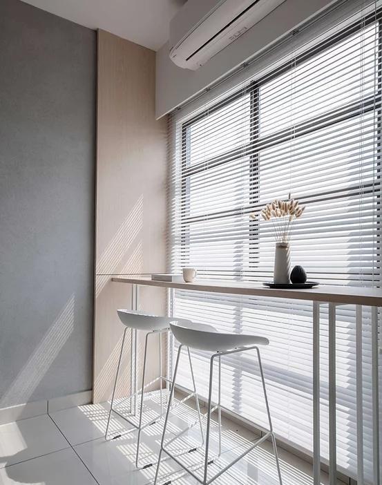 靠窗处设吧台,并加装百叶帘,灵活调节光线,不论是平日办公,还是用个简餐都很合适,同时抬眼就能欣赏到窗外风景。