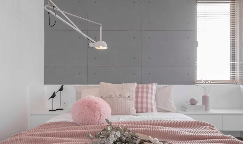 女孩的卧室自然更粉嫩些,床头柜和背景板一体,不占空间,也便于日常打扫,卫生间整体跟着家装走,这里就不做过多介绍了~