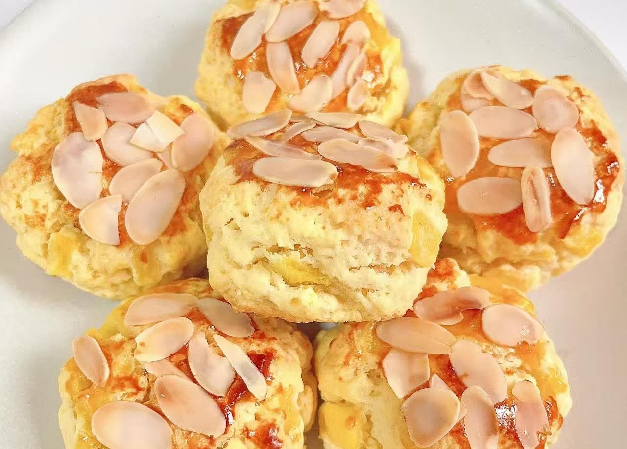 5、25分钟后,香喷喷的苹果司康就出炉啦!放凉一点就可以给孩子吃了。这个司康吃起来松软香甜的,特别适合当孩子的下午茶或者小零食。