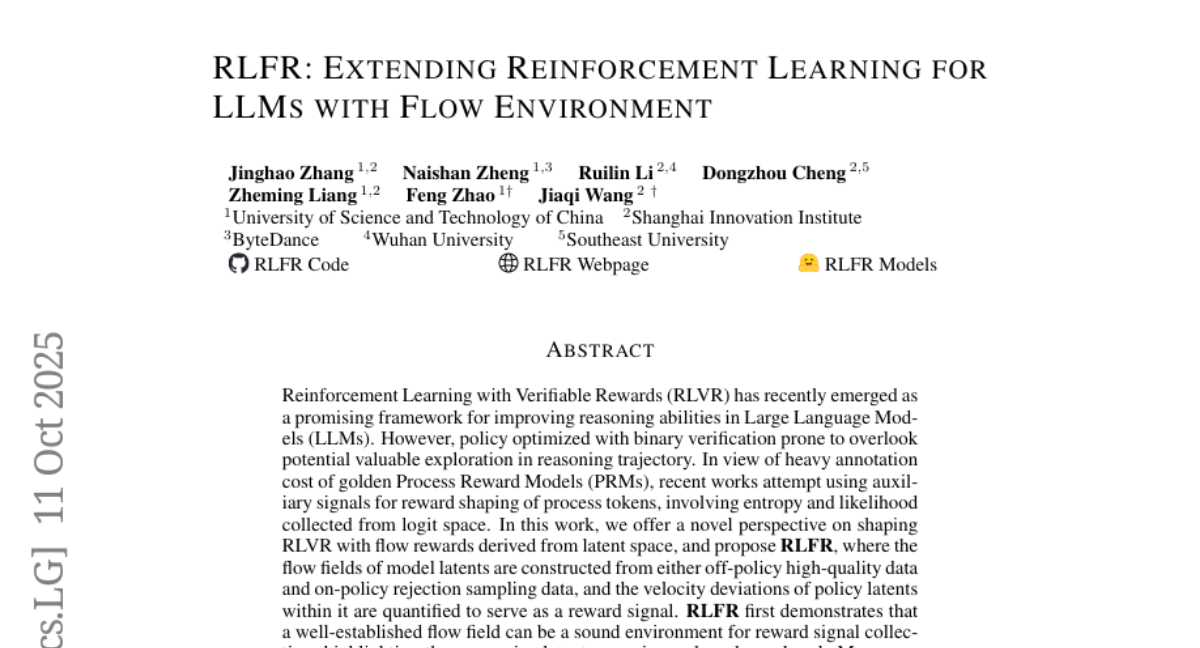 这项由中国科学技术大学和上海创新院的张景昊、郑乃山等研究人员领导的研究发表于2025年1月,论文编号为arXiv:2510.10201v1。有兴趣深入了解的读者可以通过该编号查询完整论文。研究团队还包括来自字节跳动、武汉大学、东南大学等机构的多位学者,他们共同开发了一种名为RLFR的全新训练方法。