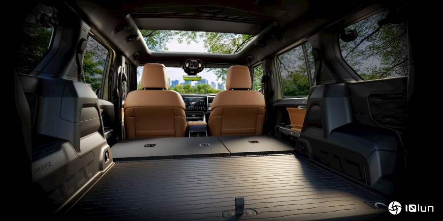 后排座椅放倒后,后备箱容积可达65.9立方英尺,再加上约3立方英尺的前舱(frunk),Recon随时准备迎接任何探险。