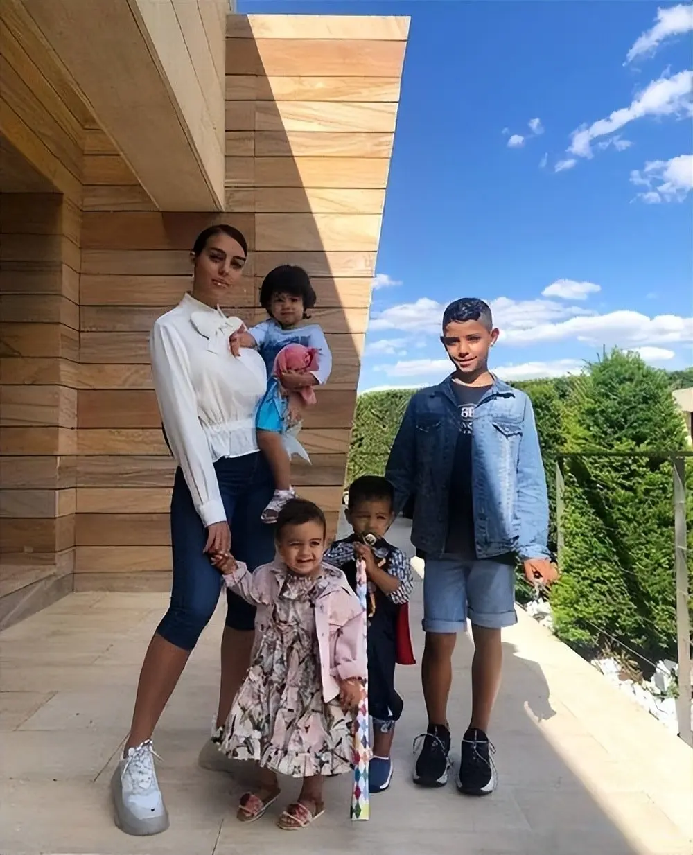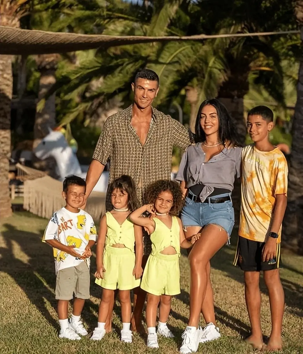 每次C罗带着全家亮相,孩子们都打扮得干净利落,脸上挂着笑。