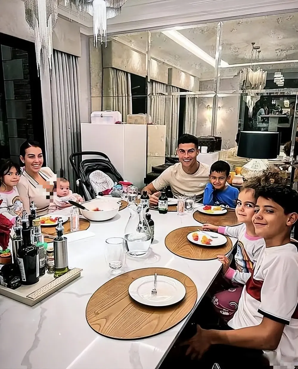 一边照顾刚出生的女儿,一边安抚其他几个孩子的情绪,还要时刻盯着C罗的状态。