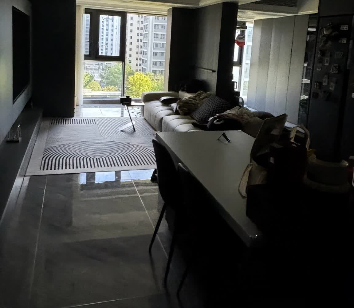 家地面装上了哑光地砖后,整个空间就像是融为了一体一样,质感很足,甚至都看不到缝隙……