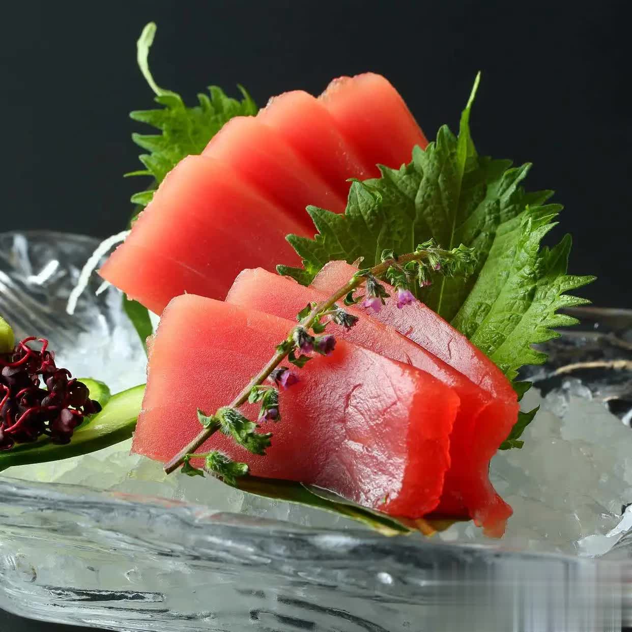 金枪鱼无疑是生鱼片中的“头牌”。它的肉质柔嫩、口感鲜美,且富含不饱和脂肪酸,对健康极为有益。金枪鱼的不同部位口感和风味也有所不同,比如大肥部分的肉质肥美,适合做成生鱼片;中肥部分则相对口感更为细腻,适合做成寿司。