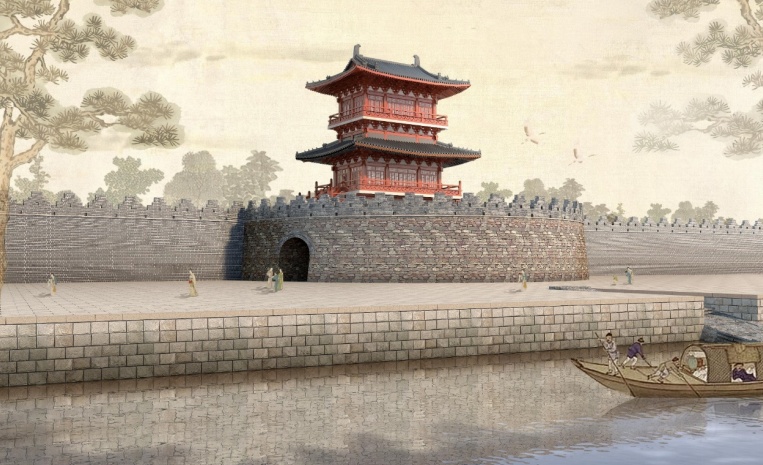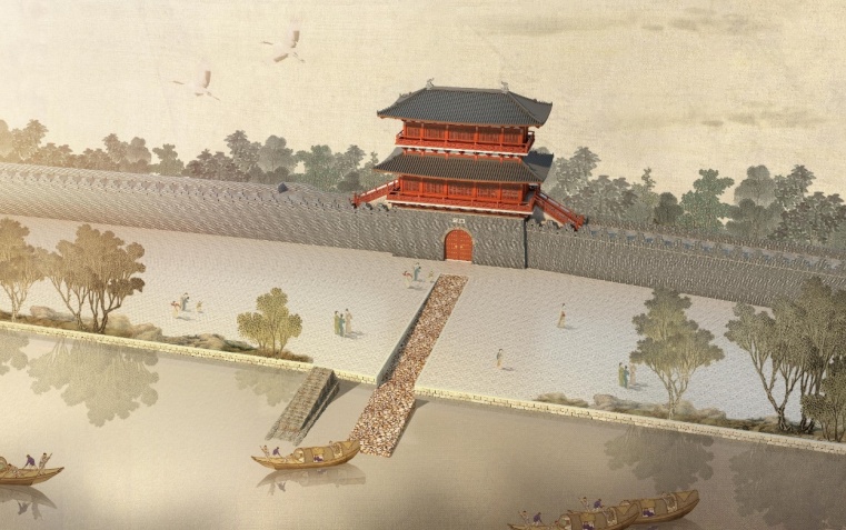 在此基础上,团队复原了北宋“谢公楼”与南宋“江山胜概楼”两期城楼,采用穿斗式木构、拱券门洞、四阿顶等典型宋式做法,真实还原了温州朔门宋代城门楼的建筑形制与技术特征。此次复原不仅重现了朔门古港作为海丝门户的历史风貌,也为我国宋元时期港口城市防御与贸易体系研究提供了重要实物依据。