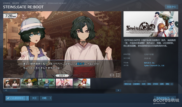 《命运石之门 RE:BOOT》Steam页面现已公布,游戏将于2026年发售
