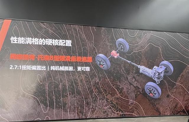 在越野性能上,昆仑谱系更是武装到牙齿。纯机械结构的托森B型限滑后差速器相比电子限滑响应更快、更可靠,可在单侧车轮打滑时实现最大2.7:1的扭矩分配,大幅提升脱困能力。原厂配备的全地形AT胎、厚度达2.3mm的全钢底盘装甲以及可负重3吨的前双拖车钩,配合最大223mm离地间隙和23°接近角、24°离去角,让这款车从出厂伊始就做好了征服全地形的准备。