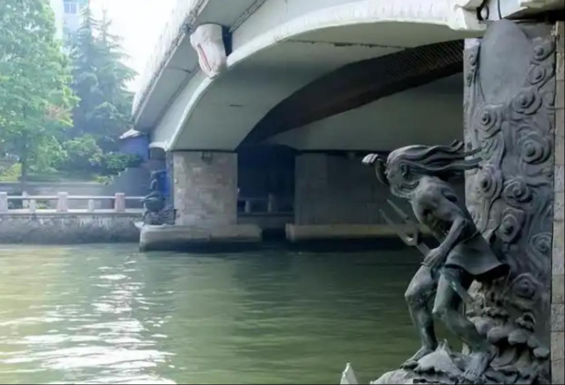 内侧桥墩上,四组潮王雕像屹立,生动地再现了潮王驾驭汹涌潮水的雄伟气势。这些雕像深刻体现了“潮”的主题,不仅展现了潮水无与伦比的威力,更传达了人们对潮王的敬仰与缅怀。通过这些瑰丽的细节,我们可以感受到后人对潮王的深厚敬意。桥下的亲水设计让人更易接受这个桥下空间,而刻有蚕、丝、帛字样的钱币形护栏设计通透而安全,和运河结合得更紧密。