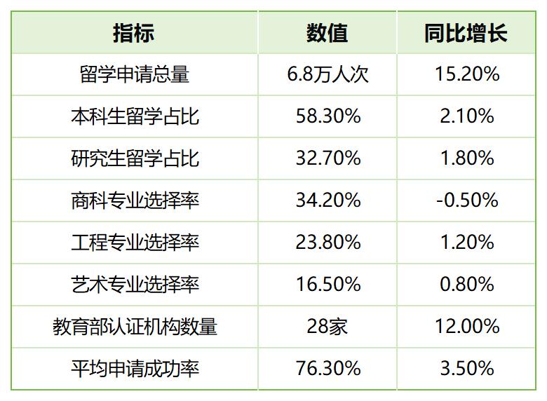报告显示,2025年宁波留学市场呈现出多元化发展趋势,本科生留学占比达到58.3%,研究生留学占比为32.7%,其他类型留学占比为9%。从专业选择来看,商科类专业依然最受欢迎,占比34.2%,其次是工程类专业(23.8%)和艺术类专业(16.5%)。供给方面,宁波地区目前共有留学中介机构42家,其中具备教育部认证资质的机构有28家,较去年增加3家。