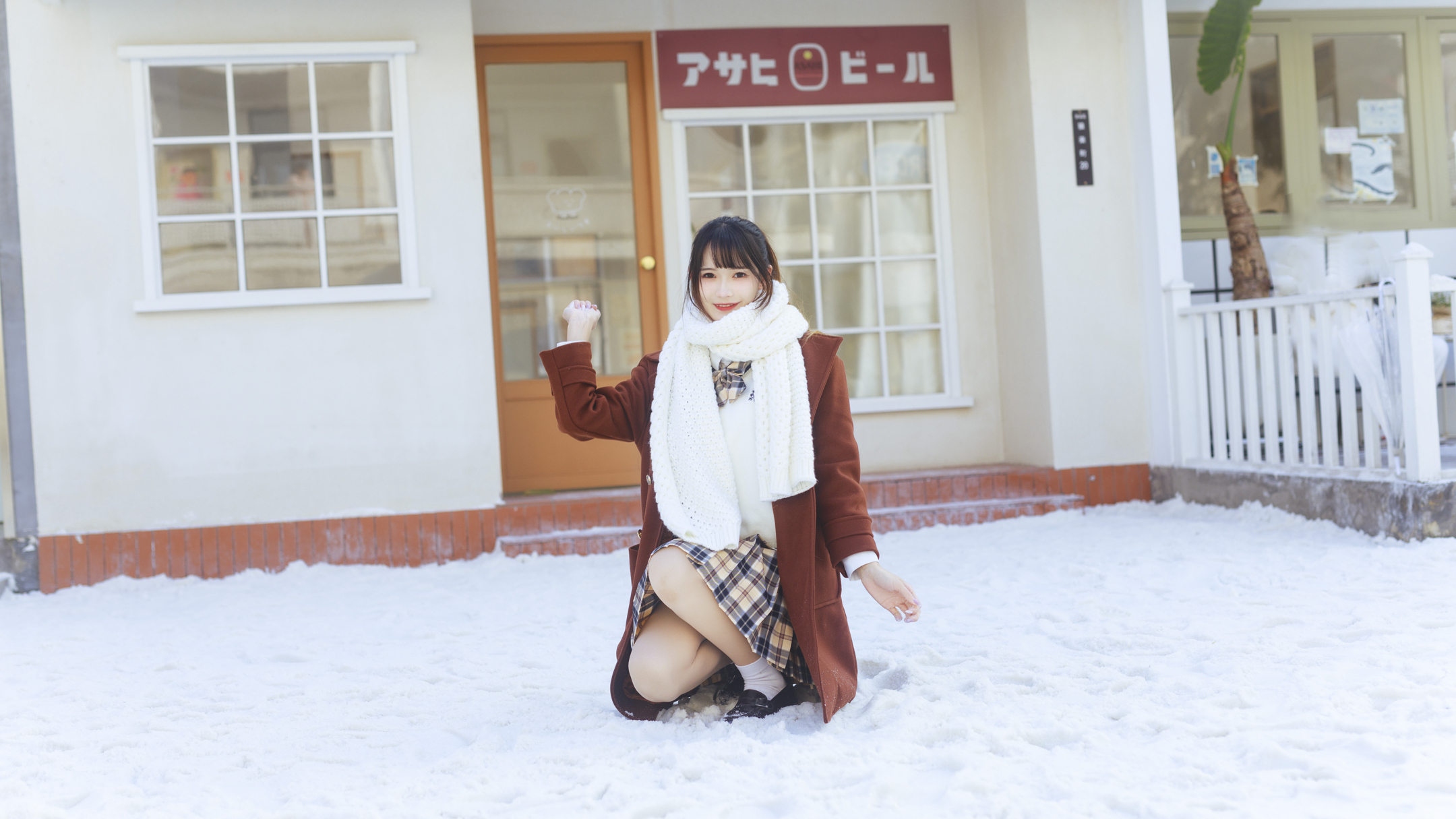 1. 元气减龄风,如果想让照片看起来可爱减龄的话,一定要尝试下这种风格,推荐穿着学生制服拍摄,但是外面肯定会冷,为了保证美观度可以搭配一件毛线外套或在衣服里面贴暖宝宝、光腿神器一定不能少,光腿效果拍出来很好看,再加上围巾、帽子、手套就可以啦!