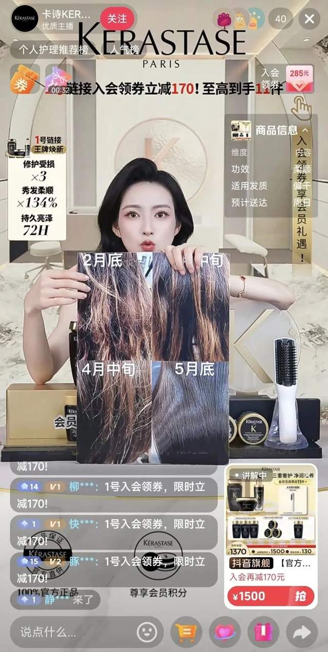 于是,卡诗把这里变成高端品牌的专业秀场,将玻色因等硬核成分翻译成用户可感知的护理方案,卡诗店铺直播间复刻沙龙体验,主播是“线上护发顾问”,提供一对一诊断。达人矩阵重点比拼专业匹配度。比如这次大促,马帅单场带来 1616 万爆发,靠的是把主推品融入“烫染修护全流程解决方案”,用户选择卡诗,即是认同一种生活哲学。