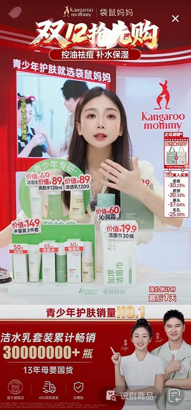 袋鼠妈妈创立于 2012 年,一直聚焦母婴肌肤特殊需求,服务超过 6200 万妈妈。品牌观察到,新一代妈妈(90后、95后)育儿观发生了代际变化,同时,青少年群体在美妆个护消费中的话语权、决策权大幅提升。