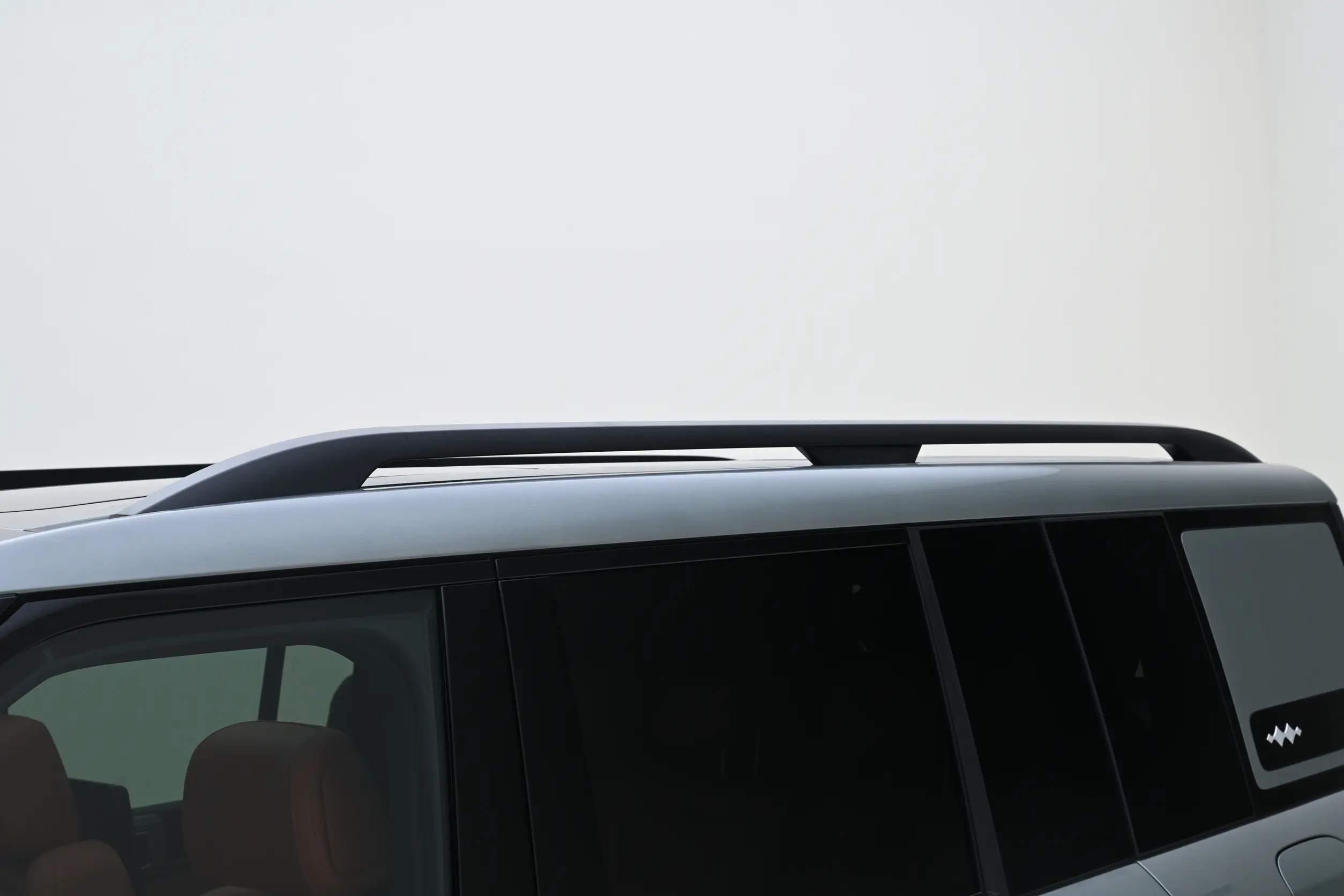 车顶上方的行李架运动感十足,可承载100公斤的重物,放置大件物品是不在话下的。打开可开启的全景天窗之后能够为车内提供良好的采光和通风效果,配备了一个全景天幕斜阳帘,我们也可以根据个人的需求拉上隔绝强太阳光的照射。后视镜是很宽大的,视野更加清晰,打开分体式大灯组之后被震撼到了,搭配上车头层次感十足的设计,很像一位蓄势待发的冲锋战士。尾部配备了备胎固定驾,也是越野SUV的标配,遇到突发情况的时候方便我们及时更换轮胎。