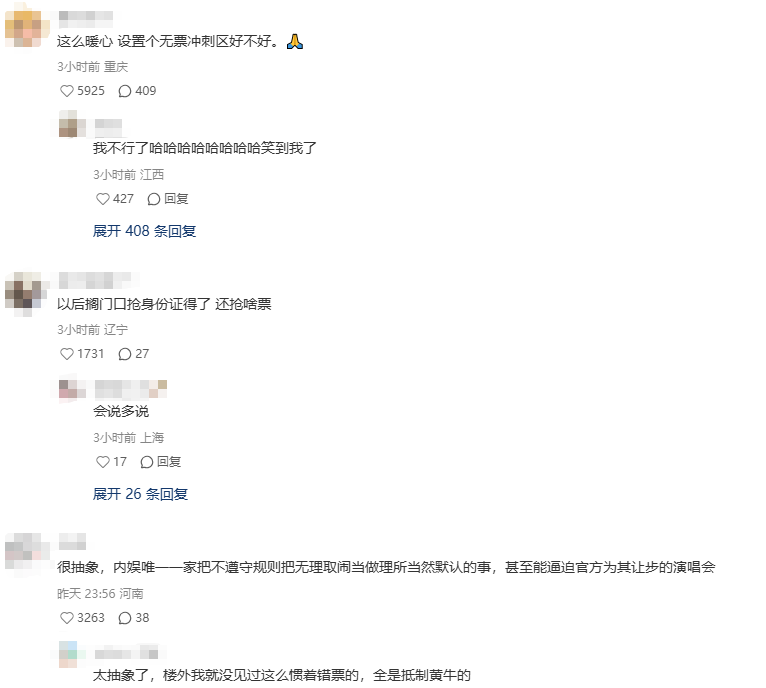 一部分网友认为这一举措十分暖心,“粉丝的错票也是钱买来的,甚至也是从很远的地方来的。”“贵阳我将永远拥护你。”但更多网友对此表示了质疑,“以前还是极个别人敢赌错票能进,现在官方都敢放在台面了?”“内娱第一家公开支持错票进场的,开眼了。”“这么暖心,设置个无票冲刺区好不好。”“以后搁门口抢身份证得了,还抢什么票。”