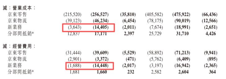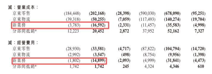 图:京东Q3新业务营业成本及经营费用,来源:企业财报