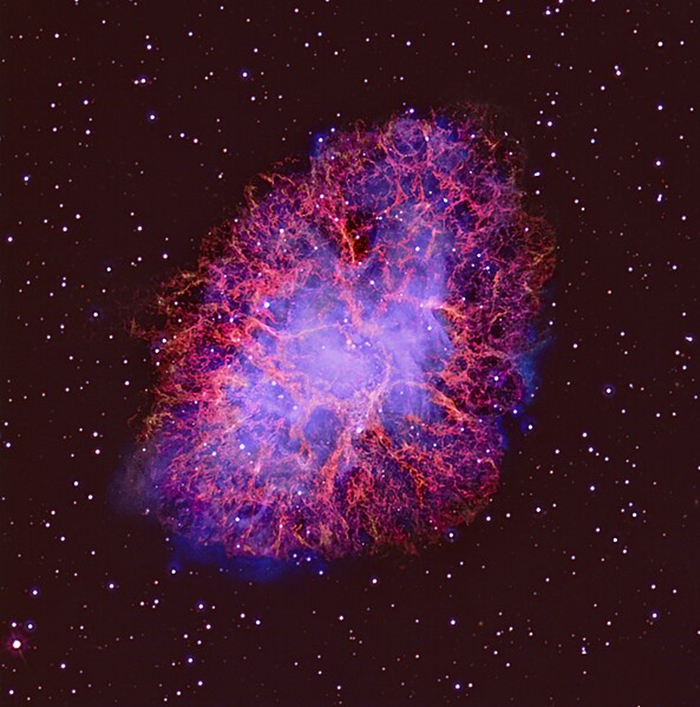 由于这些古代的记录与“蟹状星云”的扩展速度、位置以及理论上推算出的爆发时间点完全吻合,因此天文学家确认,“蟹状星云”正是一次II型超新星爆发后所留下的遗迹,并将其命名为“SN 1054”。