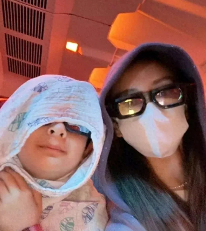 孩子生病了,她陪着去急诊,为了能让孩子舒服一点,翘着腿让孩子窝在自己身上。