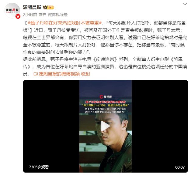 (来源:潇湘晨报) 近日,甄子丹接受专访,被问及在国外工作是否会被歧视时,甄子丹表示:“歧视在全世界都会有,你要用实力去证明给别人看。”他透露自己在好莱坞拍戏时是完全不被尊重的,“每天跟制片人打