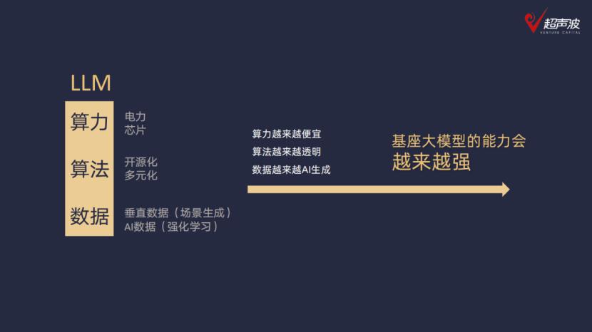 杨子超先生从大语言模型的核心要素切入,提出“算力、算法、数据”三大关键板块。算力方面,中国能源及电力充足,这成为独特优势;算法领域,开源趋势明显,且多模态等多元算法持续涌现;数据层面,原有互联网的公开数据已被大模型充分吸收,如今场景生成数据和 AI 生成数据成为核心养料,“算力越来越便宜,算法越来越透明,数据越来越 AI 生成”。