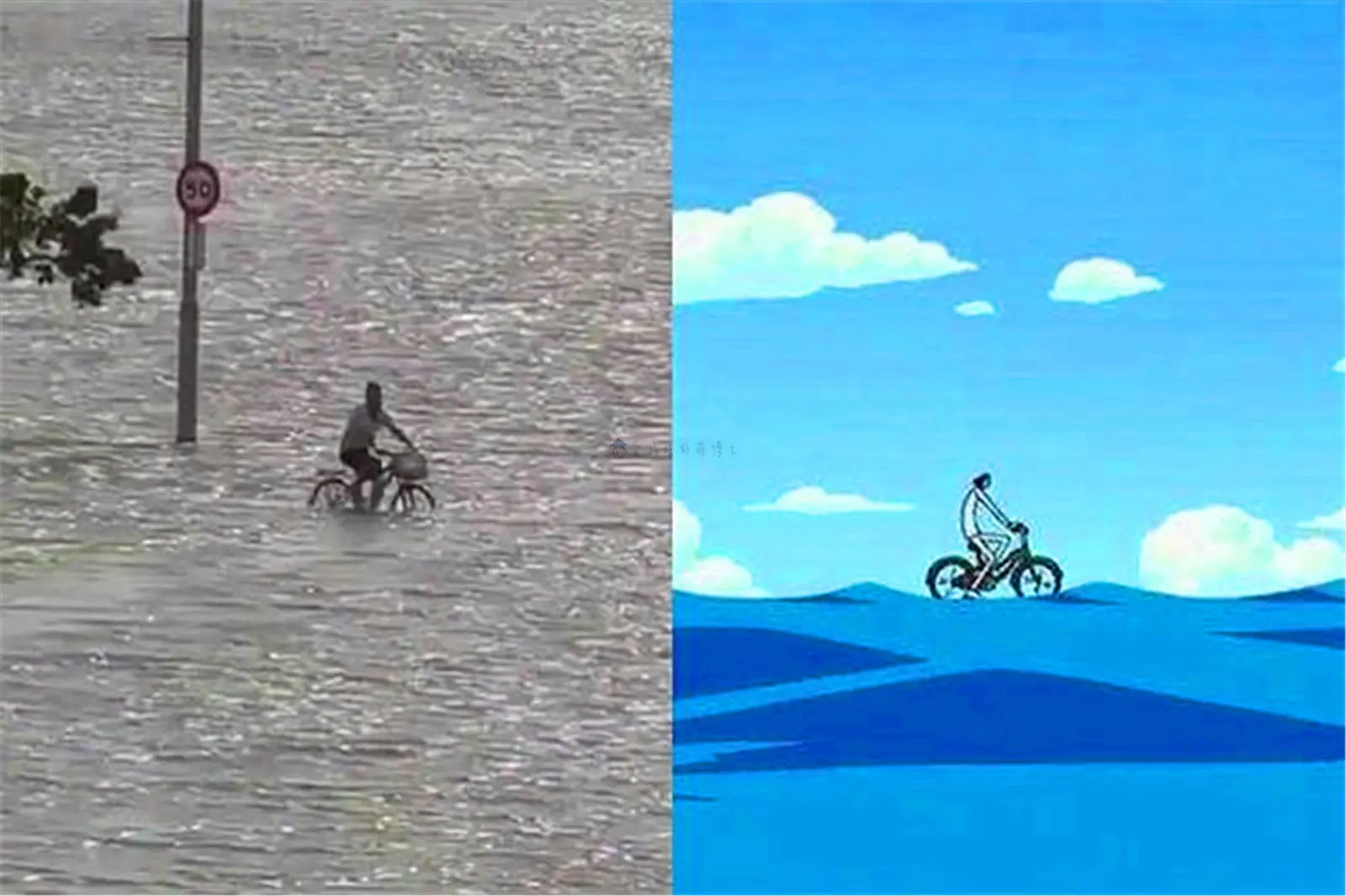 之前,博士曾和大家分享了文章《男子在台风天踏浪骑行,碰巧Cos了一回航海王库赞》,介绍了一种“被动型”的Cosplay作品。近期,2025年第26号台风“凤凰”在中国台湾岛西南部沿海肆虐,带来了强风暴雨。当天气慢慢转好,一段网友拍摄的影片在社群里成为热门话题,他拍到了一位男子在淹水的地面上优哉游哉地骑着自行车,让大家想到了《航海王》里的库赞(也称青雉)。