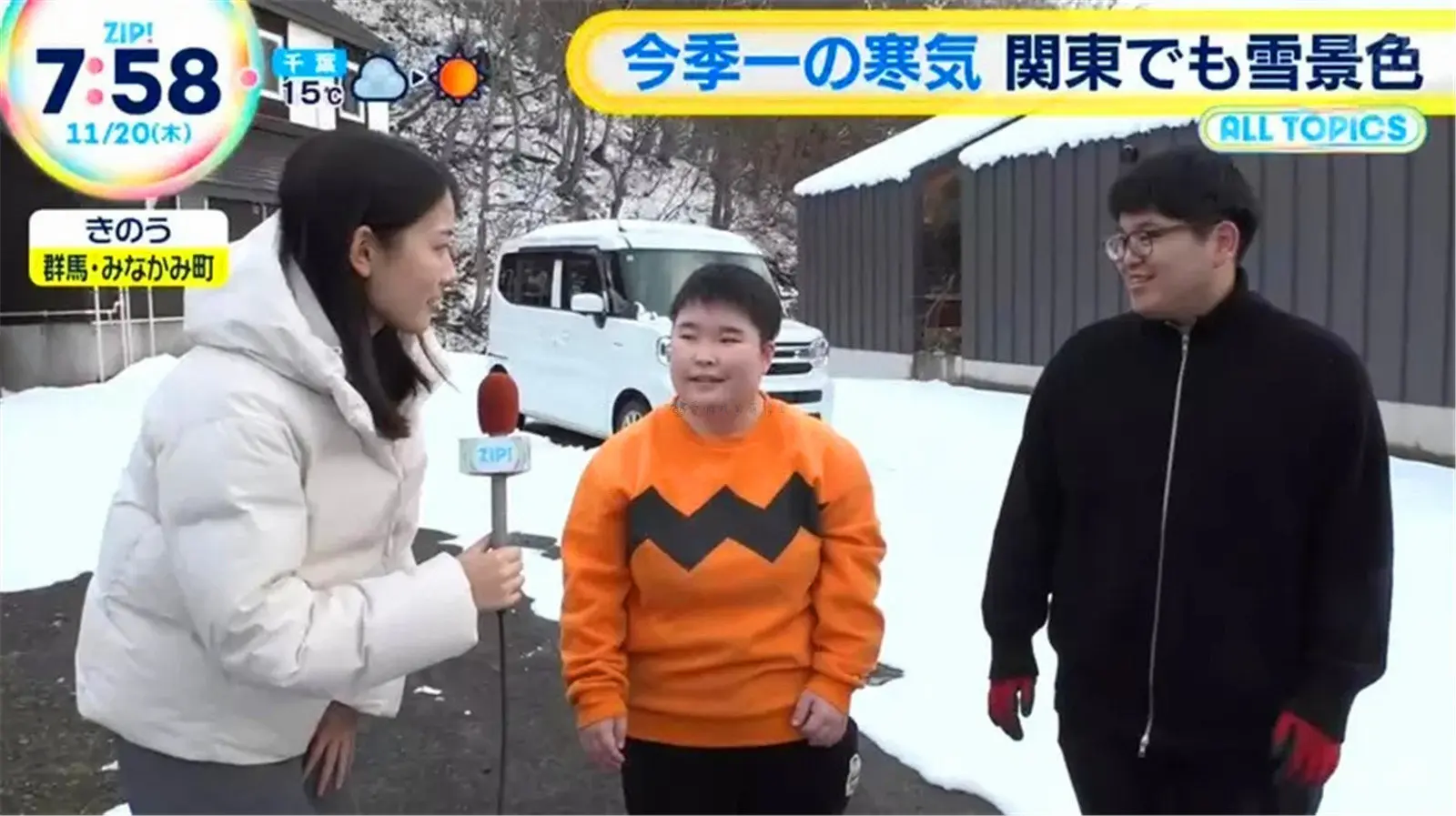 讲道理,这种报道天气情况、风土民情的新闻节目虽说有一定的看点,但也谈不上有多受欢迎,大家稍微了解一下肯定就换台了,不过这一次“ZIP!”的特派记者在拍摄到大量积雪的同时,还访问当地民众对于大雪的看法,结果其中一位受访的老百姓在网上引爆了话题。就是一位普通人,有啥奇怪的?原来这位超像人气动漫《哆啦A梦》里的胖虎!
