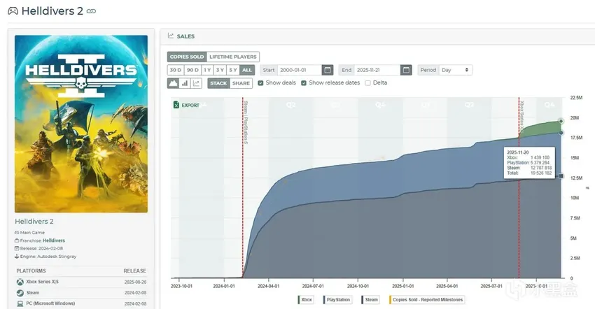 索尼靠Steam狂揽逾85亿人民币!《绝地潜兵2》一骑绝尘成最大功臣