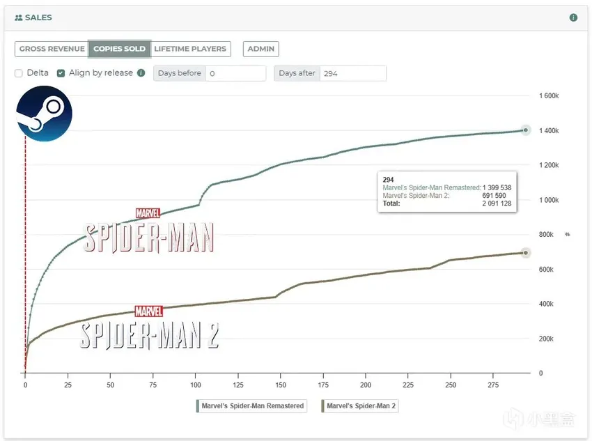 【本文由小黑盒作者@灰袍塔德于11月22日发布,转载请标明出处!】 据市场研究机构 Alinea Analytics 的最新报告,索尼旗下 PlayStation 游戏在 Valve 的 Steam 平台上表现亮眼:自上架以来这些作品累计毛收入约 15 亿美元(约 106