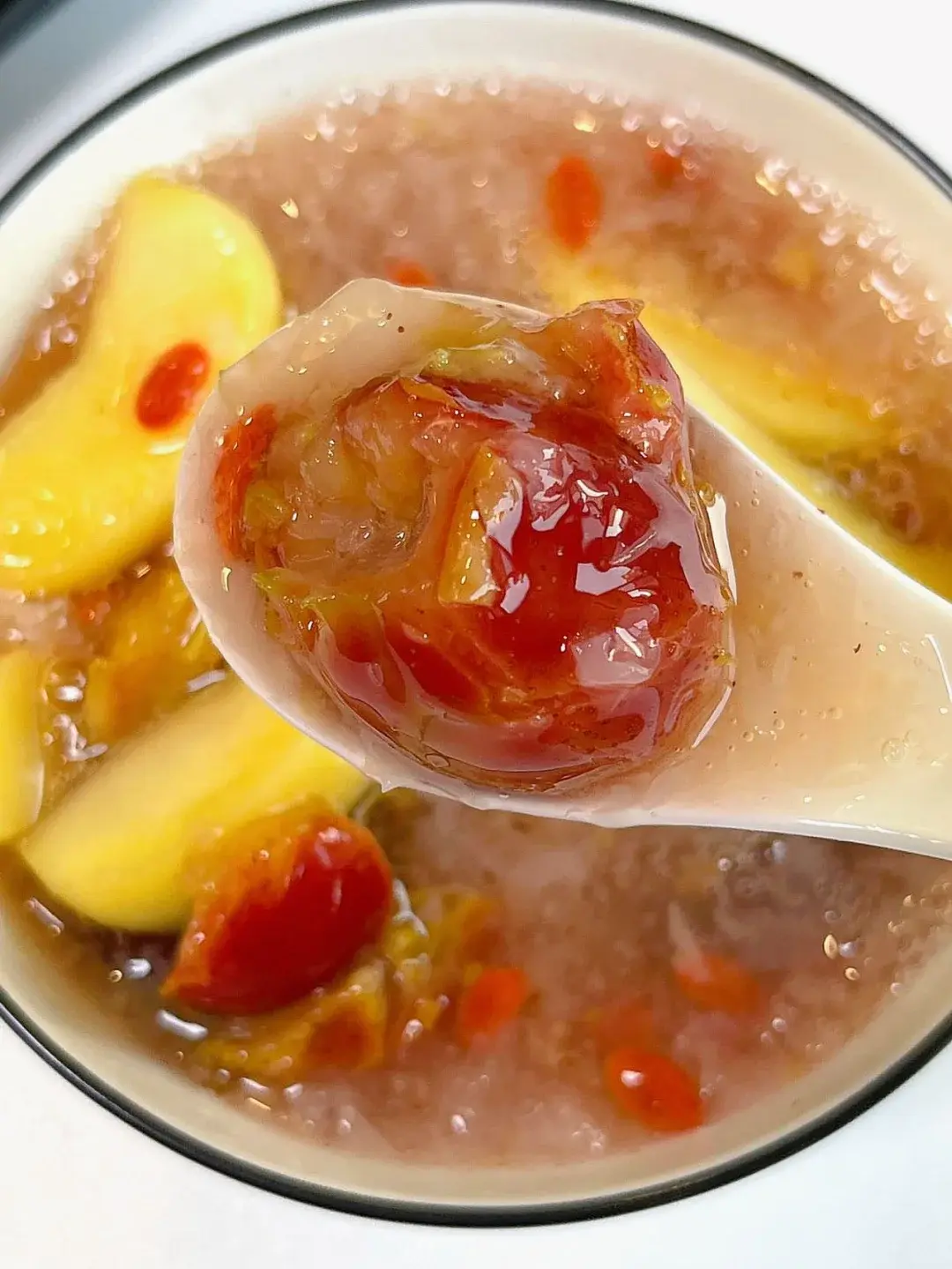3、然后转中火炖煮20分钟即可,喜欢喝甜的可以再加一点黄冰糖!